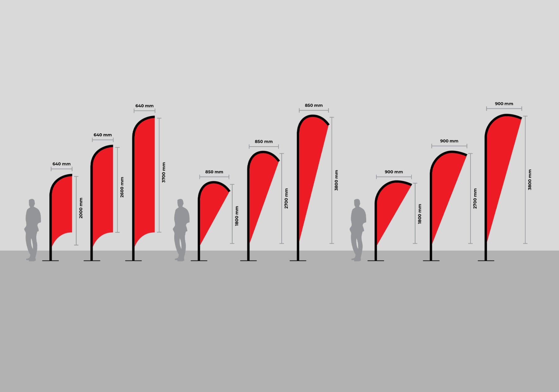 Available in three distinct models – Apex, Neo, and Arc – and three sizes, our flags adapt to any promotional need. Choose single- or double-sided printing for a fully customized look.