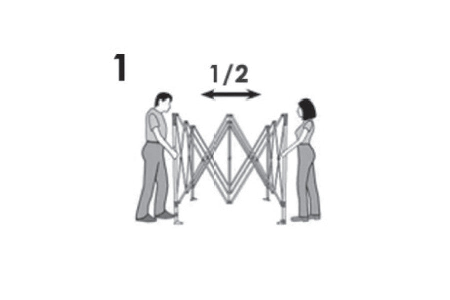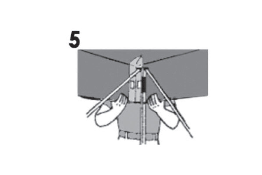 Saisissez le “V” inférieur au centre, là où indiqué, de chaque côté opposé. Soulevez et tirez lentement la structure à mi-chemin.