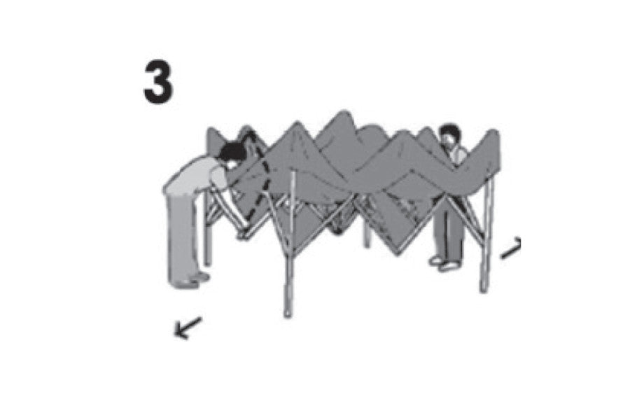 Continuez à soulever avec la toile par-dessus et reculez jusqu’à ce que la tente Tempo soit complètement déployée.