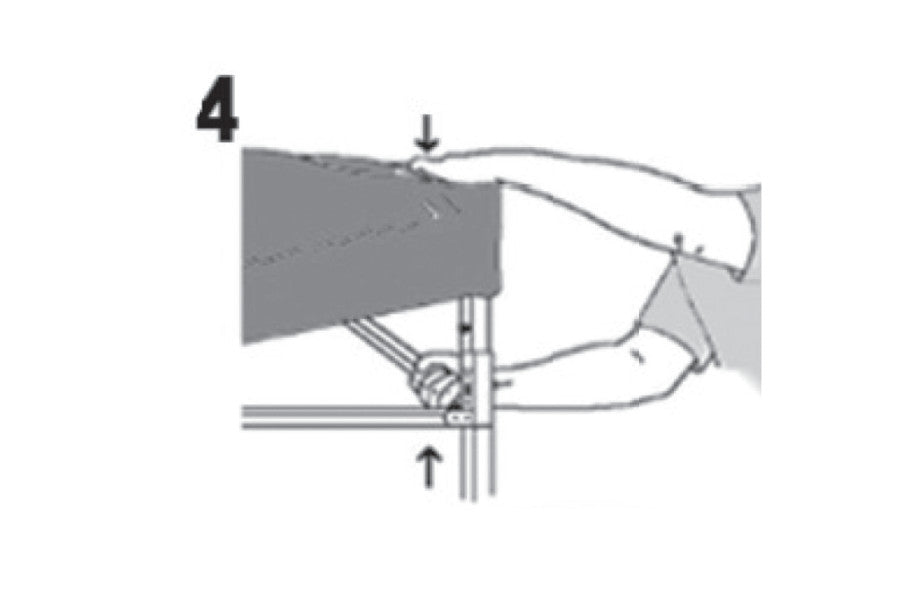 Placez la toile de couverture au-dessus de la structure partiellement déployée, en alignant les coins de la toile avec ceux de la structure.