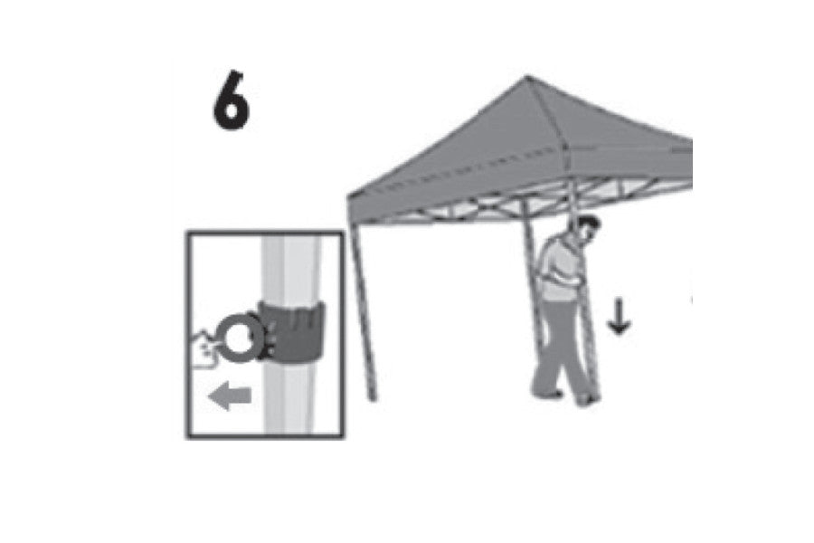 Clipsez et sécurisez les sangles à l’intérieur de la tente, au milieu de chaque bande de la bordure, pour maintenir et tendre la toile sur la structure.
