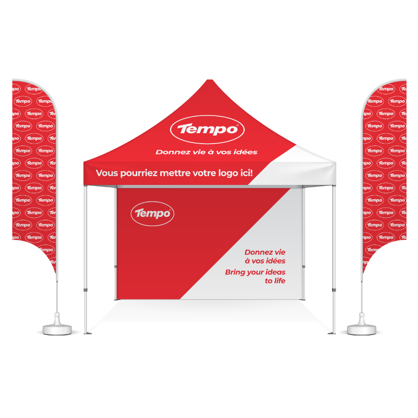 Pour garantir une impression de haute qualité sur votre tente Tempo, nous vous invitons à nous envoyer vos fichiers dans un format de haute résolution (idéalement en vectoriel comme .AI, .EPS ou .PDF). Les fichiers raster (.PNG, .JPEG) sont acceptés, mais doivent être en résolution maximale (300 DPI ou plus).